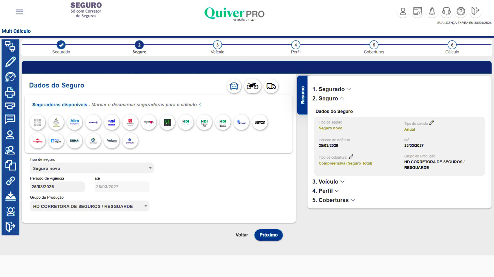 A Quiver MULT automatiza o cálculo com dezenas de seguradoras simultaneamente.